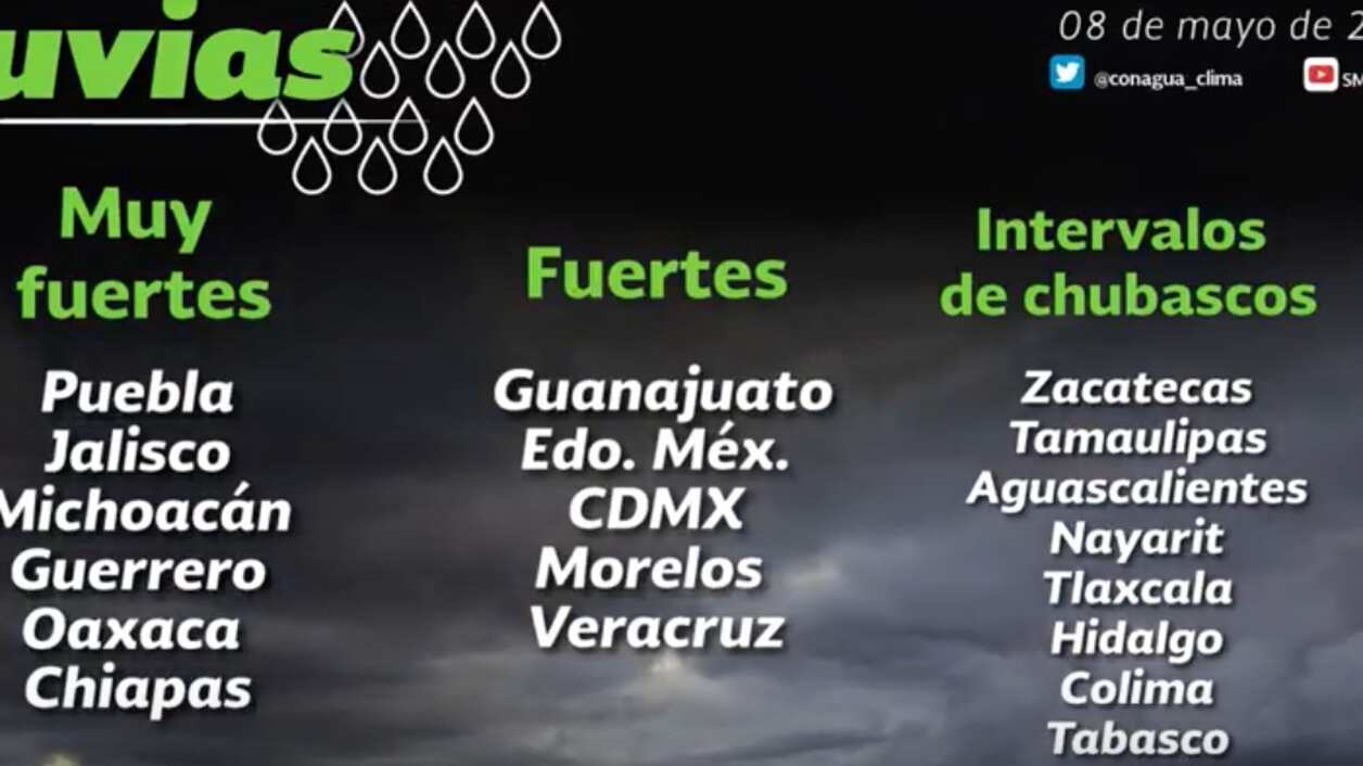 Tormentas fuertes a muy fuertes en el occidente, centro, sur y sureste del país.