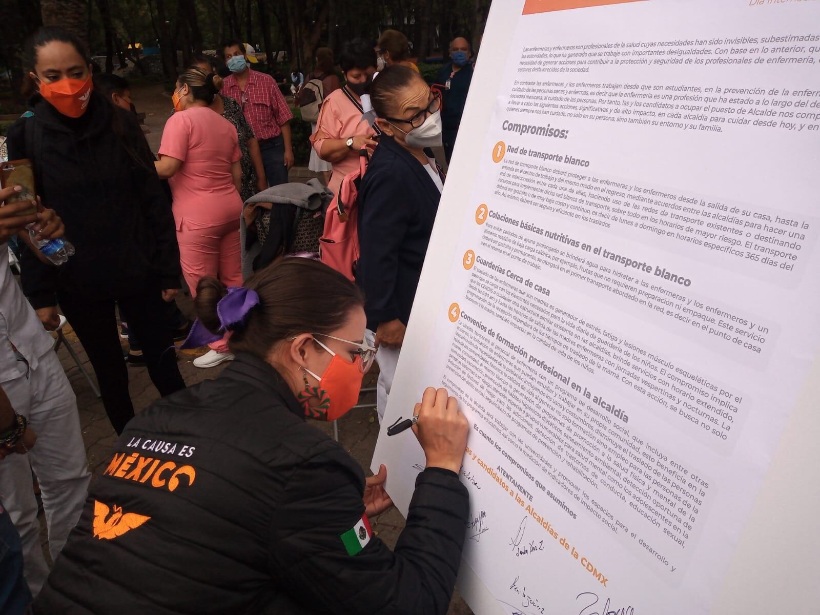 Candidatos de Movimiento Ciudadano en la Ciudad de México celebraron el Día Internacional de la Enfermería, en un evento realizado en el Jardín Ramón López Velarde, frente al Centro Médico Siglo XXI, que finalizó con la firma de compromisos para impulsar acciones de gobierno o políticas públicas que impacten la mejora de este gremio.