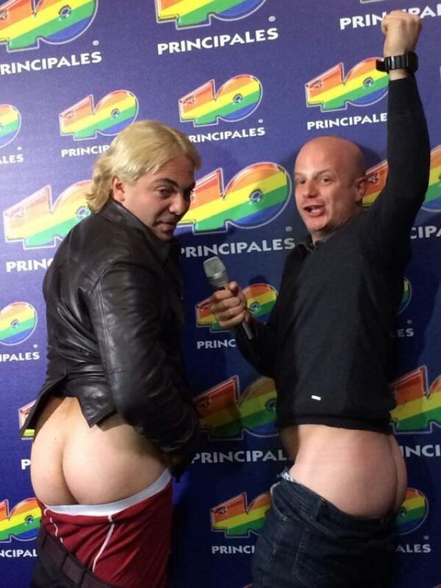 Facundo fue quien compartió en su perfil la foto en la que aparece junto al intérprete de “Azul”, ambos de espaldas, mostrando sus retaguardias con los hashtags  #retoTanga #RetoSaioteExtremoDeLaMuerte.