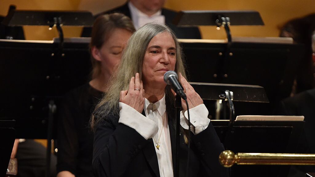 La cantautora estadounidense Patti Smith se convirtió en protagonista de la ceremonia de entrega de los Premios Nobel, aunque no recibía ningún galardón, y con su voz eclipsó la ausencia del laureado en Literatura, Bob Dylan, al interpretar el tema A Hard Rain’s A-Gonna Fall.