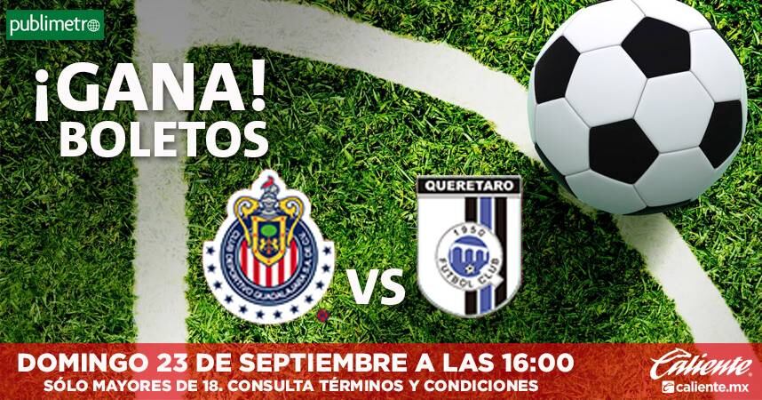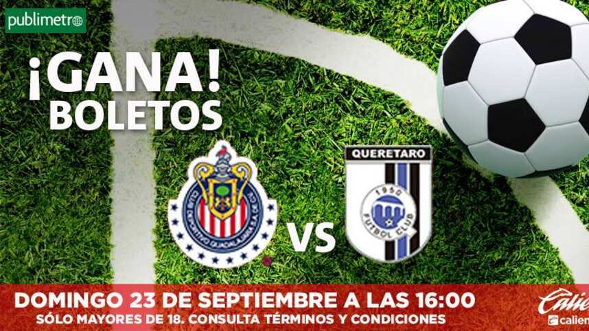 Si eres de las primeras personas en contestar correctamente las siguientes preguntas y mandas tus respuestas junto con tus datos completos (nombre, teléfono y edad) a ganagdl@publimetro.com.mx podrás ganar un pase doble para asistir al partido que se disputará el próximo domingo 23 de septiembre entre “CHIVAS vs QUERÉTARO”.