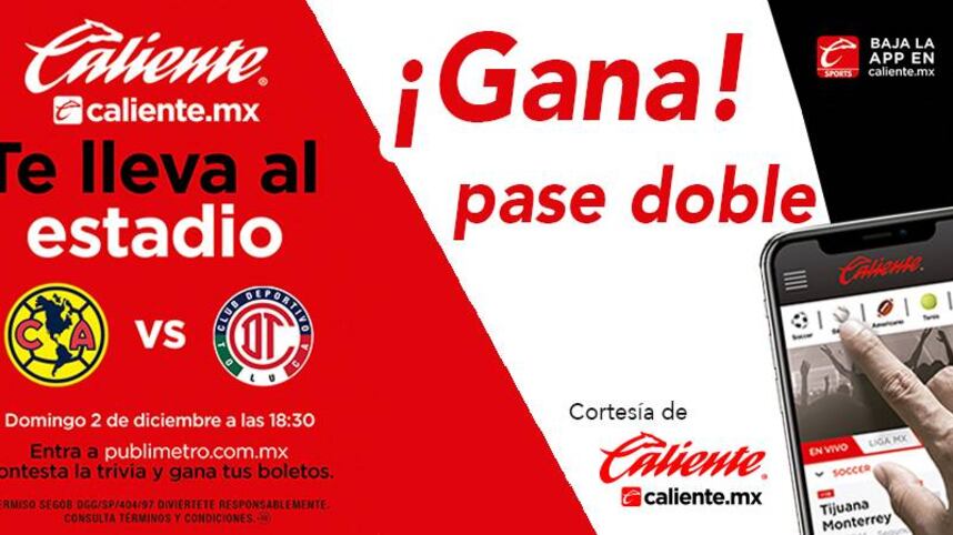 Si eres de las primeras personas en contestar correctamente las siguientes preguntas y mandas tus respuestas junto con tus datos completos (nombre, teléfono y edad) a gana@publimetro.com.mx podrás ganar un pase doble para asistir al partido “AMÉRICA vs TOLUCA” el próximo 2 de Diciembre.