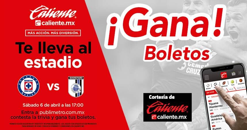 Si eres de las primeras personas en contestar correctamente las siguientes preguntas y mandas tus respuestas junto con tus datos completos (nombre, sección favorita de Publimetro y edad) a gana@publimetro.com.mx podrás ganar un pase doble para asistir al partido “CRUZ AZUL vs QUERÉTARO” el próximo 6 de Abril.
