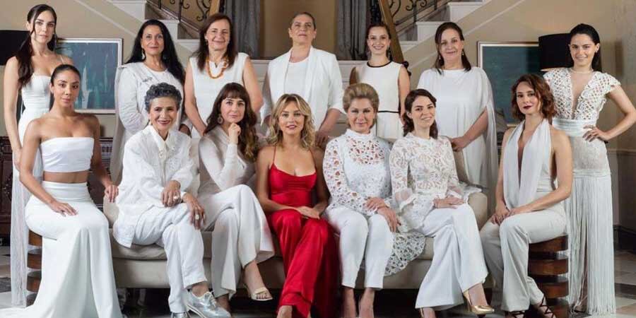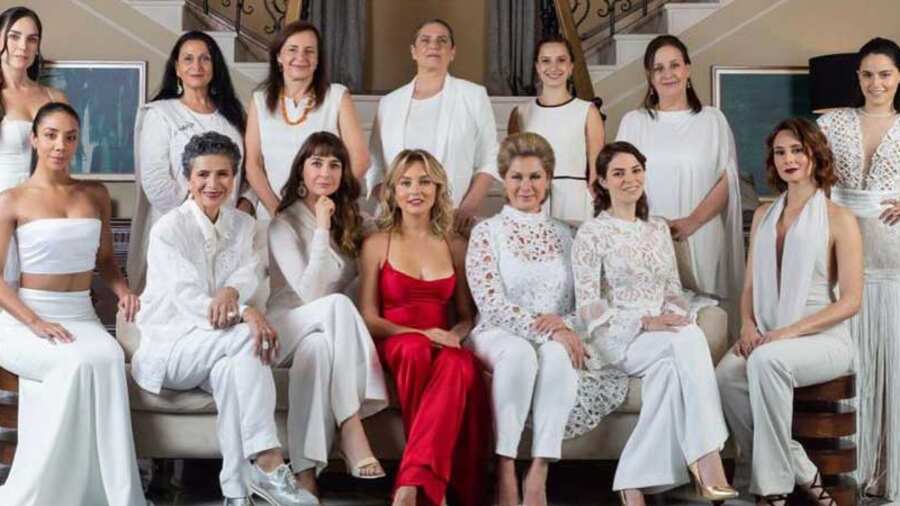 Como recordaremos, antes del estreno de esta telenovela, la producción de Giselle González presentó a su elenco con una serie de instantáneas desde la ‘mansión Cantú’ donde todas las actrices vestían de blanco, a excepción de la protagonista, Angelique Boyer, quien vistió de rojo; mientras todos los actores lucieron trajes negros, diferenciándose Palacios con una corbata carmesí.