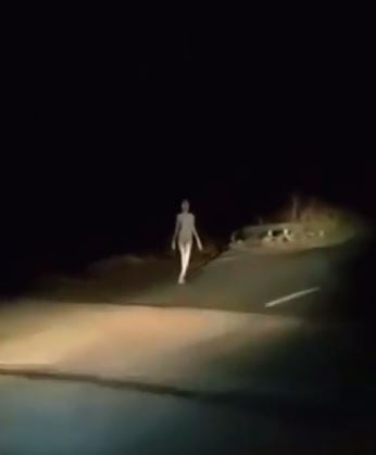Pero mientras las ruedas van y la poca iluminación es la dueña del lugar, un extraño ser aparece del lado izquierdo de la carretera. Los presentes graban la escena con asombro y murmuran entre ellos.