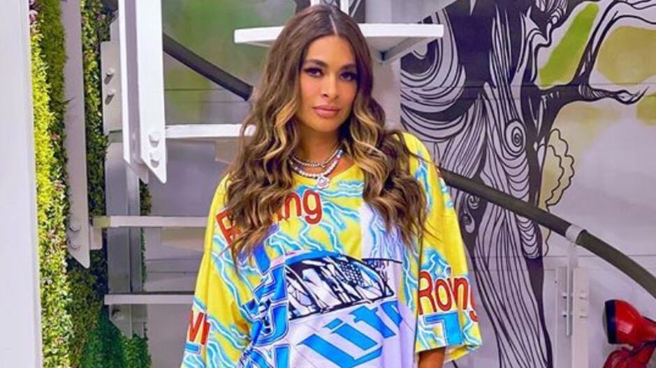 La conductora de televisión Galilea Montijo es amante de la moda y suele deslumbrar a sus seguidores con sus impactantes looks diarios. Esta vez un camisón blanco urbano con un estampado vintage de un retrato, mangas con faralaos, y zapatos deportivos a juego con varios colores. Para completar su look agregó accesorios entre collares y pendientes que destacan entre su larga cabellera.