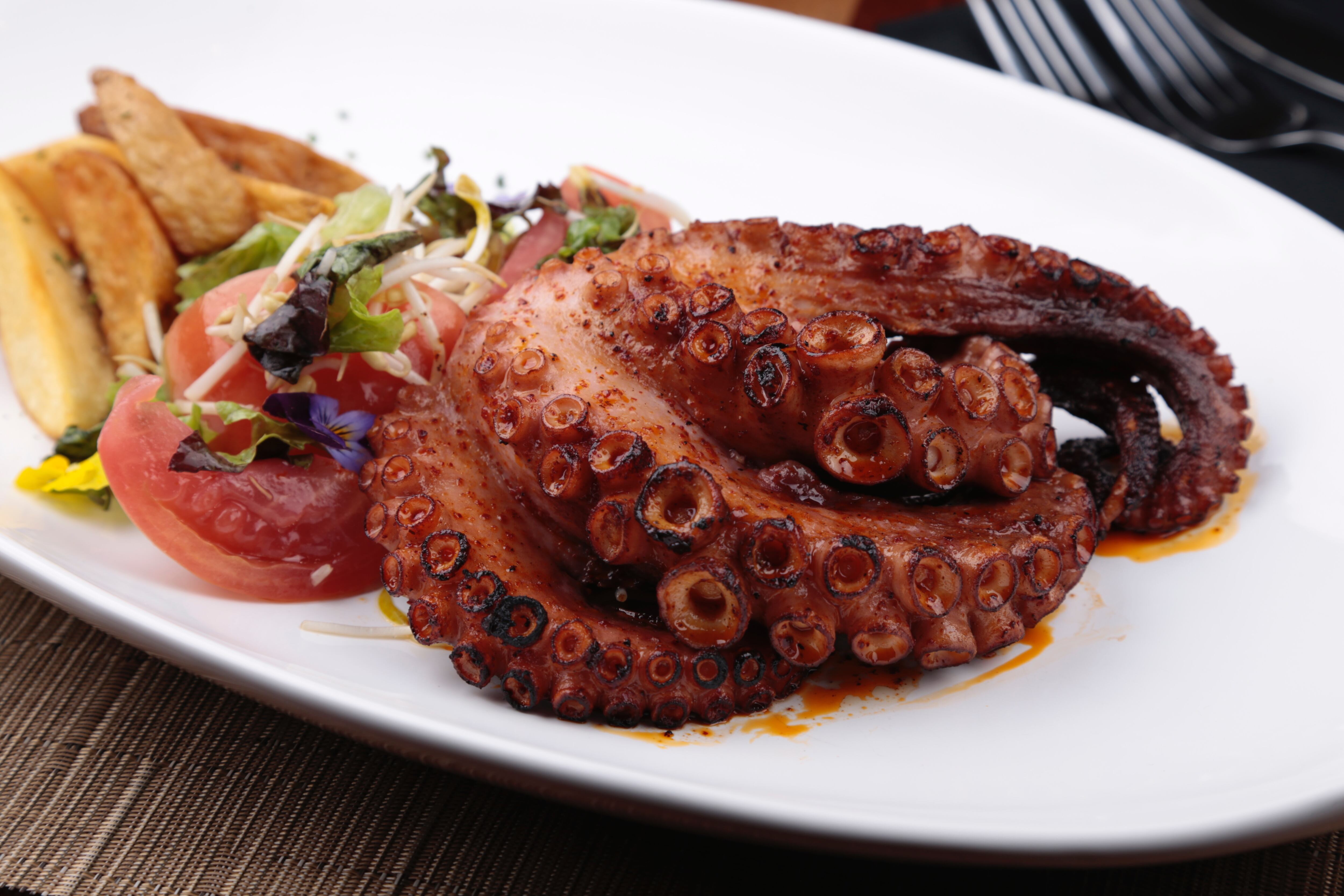 • Como segundo tiempo puedes desgustar la estrella de la casa: el pulpo adobado a las brasas de textura crocante. Asimismo, el Fettuccine Alfredo que puedes acompañar con pechuga de pollo a la parrilla o con camarones a la plancha. También están los tacos mar y tierra que es filete de res con camarón y queso.