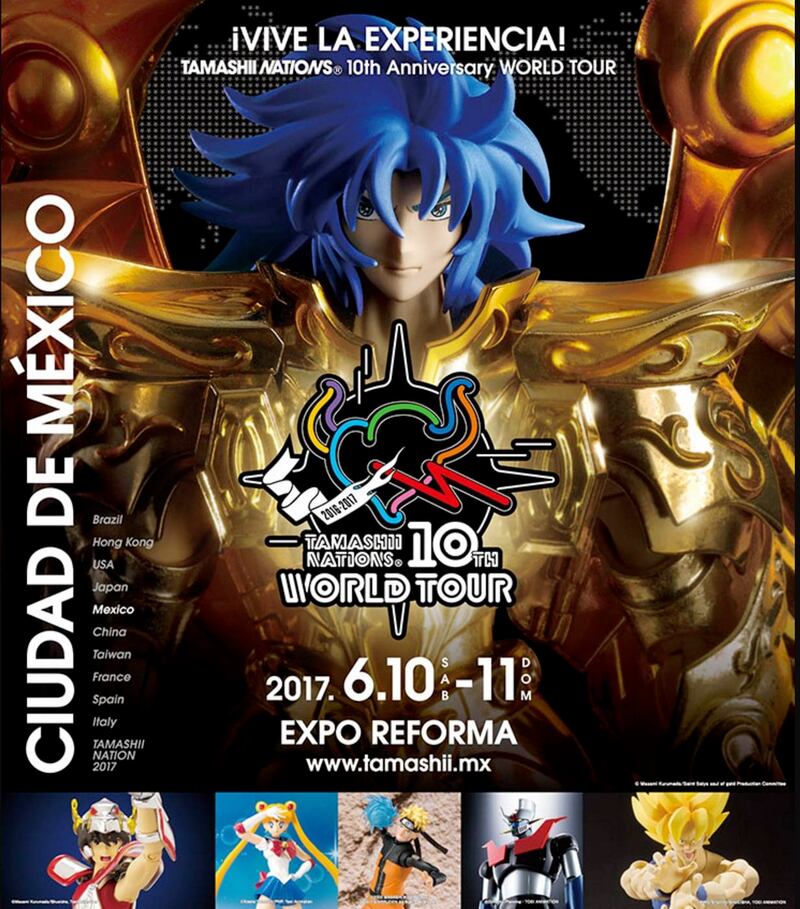 La exposición más exclusiva de figuras de colección de animes de la marca Bandai Tamashii Nations llega a México. Su nombre es Tamashii Nations World Tour 2017 y en ella podrás ver esculturas de series como Saint Seiya, Dragon Ball, Sailor Moon, Naruto, One Piece, Gundam, Mazinger Z y muchas más, todas creadas por la empresa mencionada que es líder mundial en este rubro. Además de apreciar los juguetes, podrás adquirir productos exclusivos y ver figuras en tamaño real entre las que se encuentran la Armadura de Poseidón, la Armadura Dorada de Géminis y también serás capaz de subirte a la Nube Voladora de Goku. Este evento llega por primera vez a México, anteriormente ha estado en Hong Kong, Japón, China, Francia, España e Italia, entre otros países.