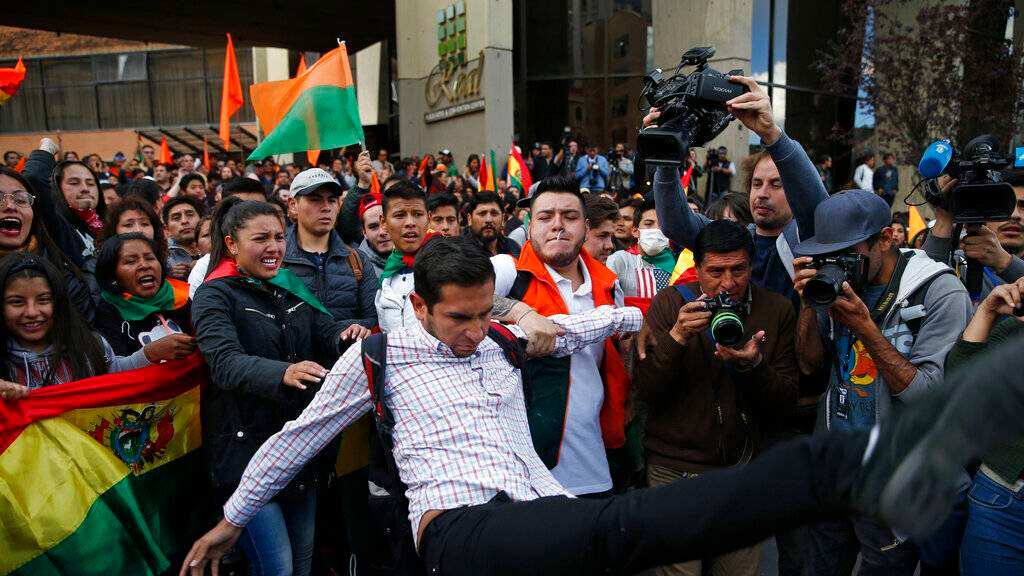 En las ciudades sureñas de Potosí y Tarija fueron quemadas las oficinas del tribunal electoral. En Sucre, también al sur, las oficinas electorales fueron saqueadas. La turba incendió la sede del gobernante Movimiento al Socialismo (MAS), el partido de Morales. La policía no pudo contener a la turba. También La Paz vivió una noche de protestas.