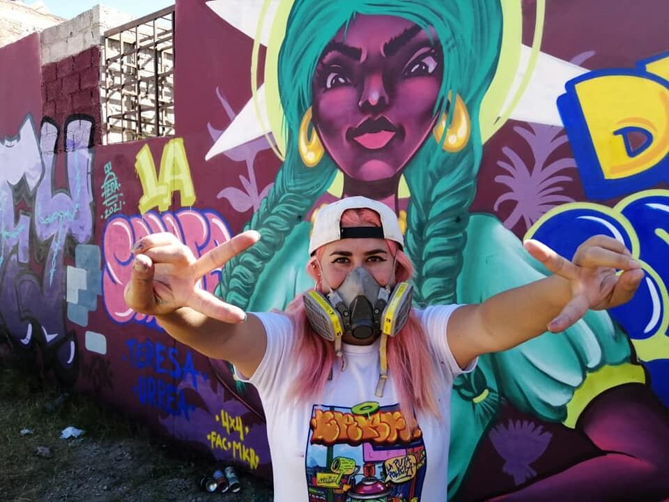 “En este evento es la segunda vez que participo y me parece bastante bien porque aunque estamos en Ciudad de México que son ciudades muy grandes, pues no hay tanta difusión de este tipo de cosas (…) tengo 18 años pintando aunque no tan constante pero yo he manejado el estilo en letras como 3D pero ahorita intenté hacer algo que refleje la naturaleza que me parece que es un símbolo femenino de nuestro entorno”, señaló Andrea, artista originaria de la Ciudad de México que participó en el mural.
