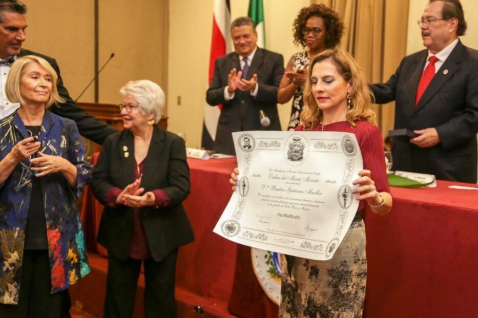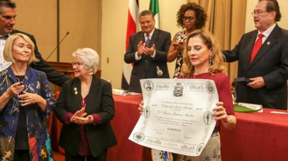 «En reconocimiento a sus años de cultivo del conocimiento literario e histórico que hermanan a México y Costa Rica”.