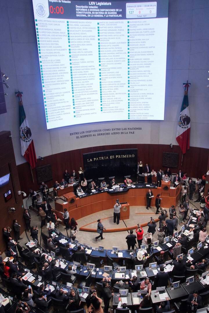 El pleno del Senado de la República aprobó, en lo general y en lo particular, la eliminación de la figura del fuero al Presidente de la República, así como de los integrantes del Congreso de la Unión (Cámara de Diputados y Senadores).