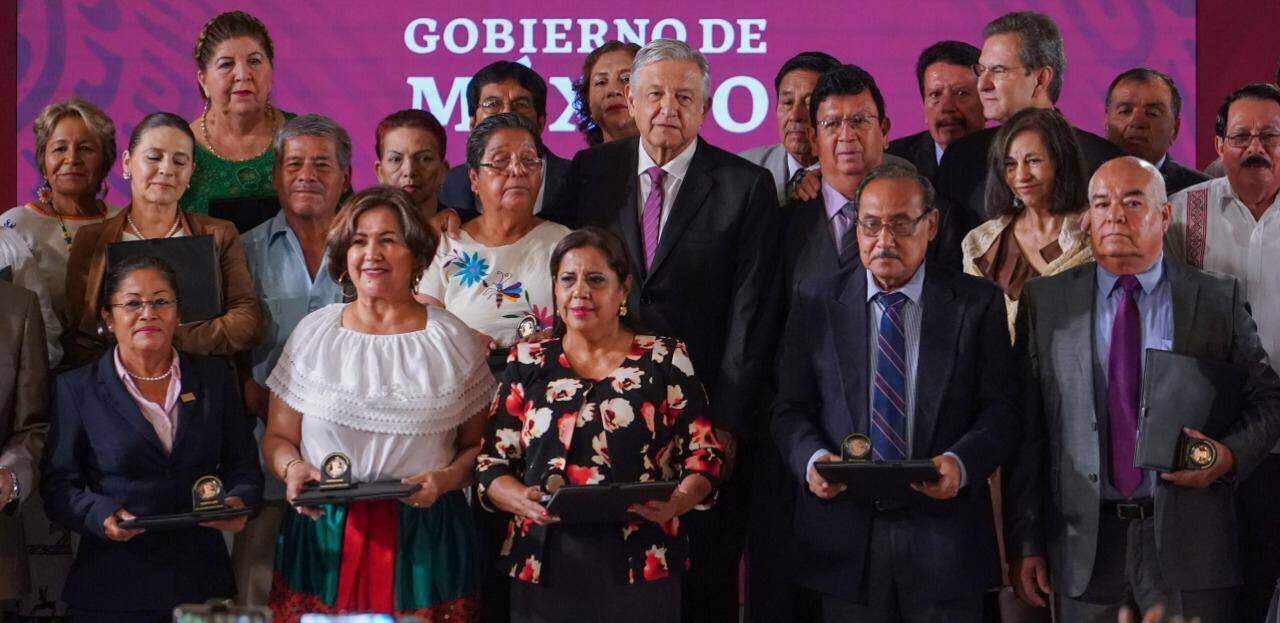 Este 15 de mayo, el presidente tuvo como invitados especiales -en su habitual rueda de prensa matutina- a 33 maestros provenientes de diversos estados del país a quienes felicitó y galardonó con la condecoración “Maestro Altamirano” y Reconocimiento “Othón Salazar Ramírez” por prestar por 40 años o más su servicio docente.