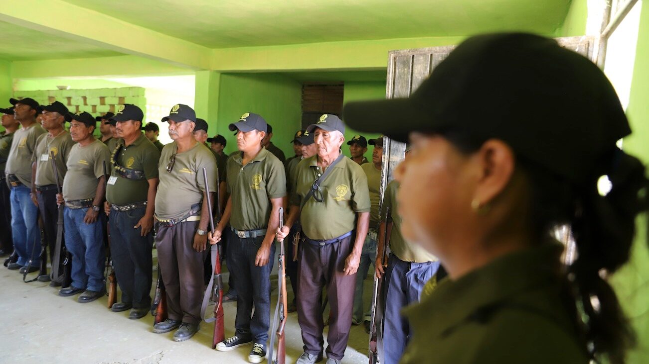 Policía comunitaria: son grupos creados bajo el sistema de usos y costumbres y por decisión de asamblea de los pueblos indígenas, con el objetivo de defender su territorio y recursos naturales.