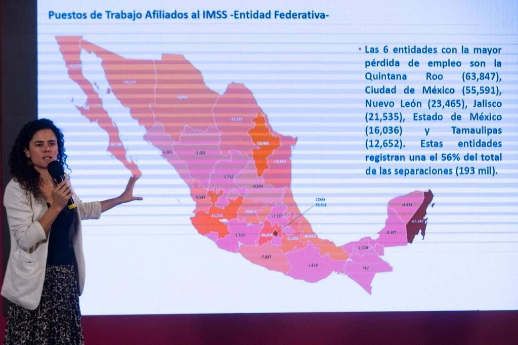En rueda de prensa desde Palacio Nacional, la funcionaria mexicana detalló que del 13 al 31 de marzo fueron 198 mil 033 empleos que se perdieron; mientras que, del 1 de abril al 6 de abril se registró una pérdida de 148 mil 845.