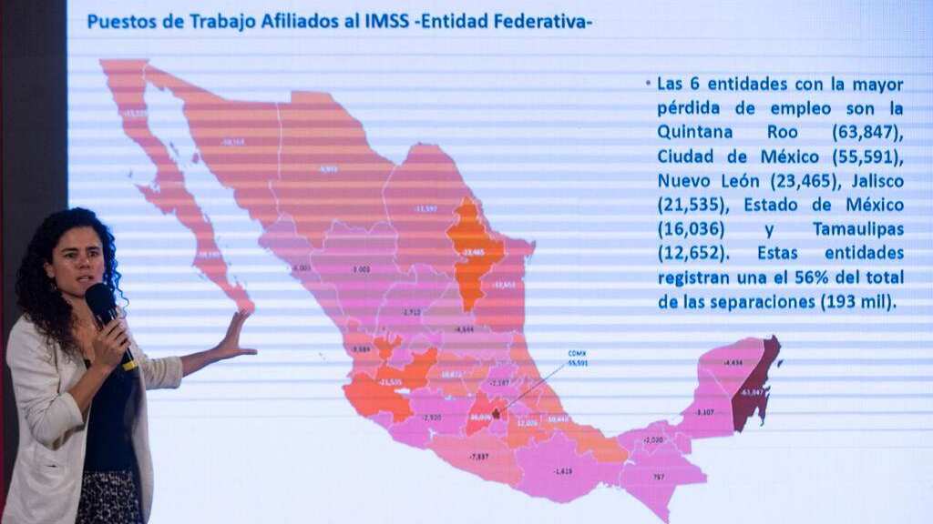La secretaria del Trabajo y Previsión Social, Luisa María Alcalde Luján, informó que entre el 13 de marzo y el 6 de abril, se han perdido 346 mil 878 puestos de trabajo.