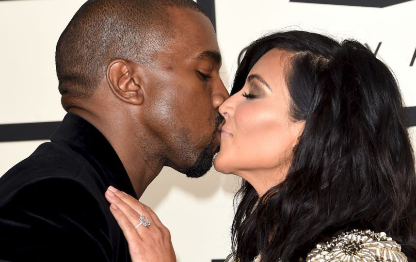 Durante su paseo por la alfombra roja de los Grammys, Kanye no pudo resistirse y decidió poner las manos en el famoso y conocido trasero de su esposa, al mismo tiempo que le planteba tremendo beso.