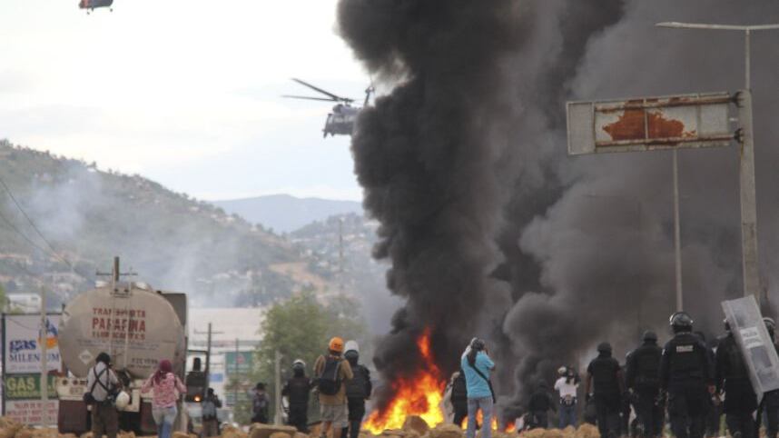El enfrentamiento entre la Policía Federal y Estatal y un grupo de «infiltrados», de acuerdo con declaraciones del magisterio y de las autoridades, dejó un saldo de seis muertos, 107 heridos y 21 detenidos en Nochixtlán, Oaxaca,