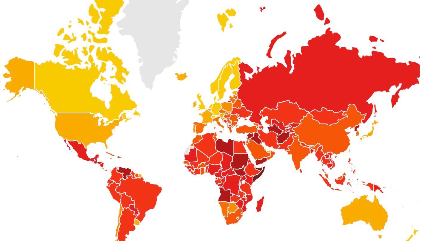 El índice rankea a 180 países y territorios según la percepción sobre la corrupción en el sector público.