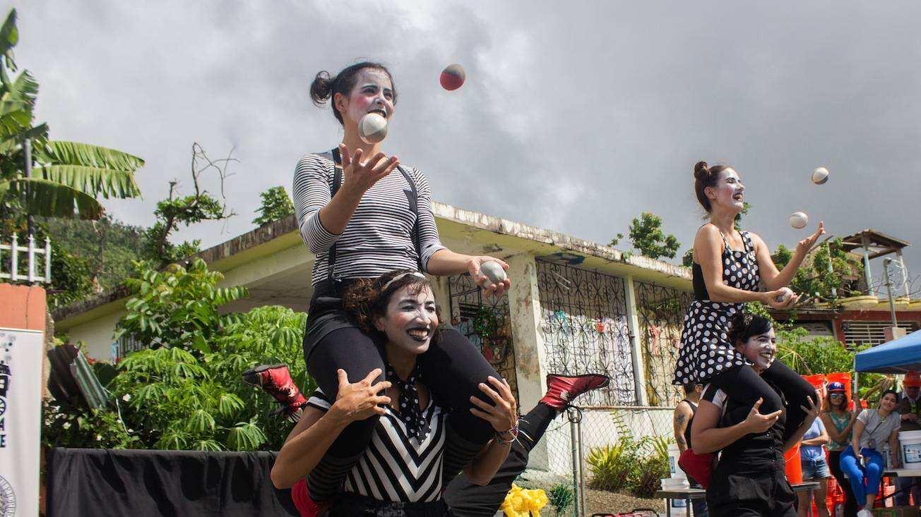 Circo Teatro Bandada, un colectivo que combina la disciplina circense con las artes teatrales, es uno de los grupos que ha dicho presente en el proyecto Cultura Rodante y se ha lanzado a las comunidades. Para ellos, “la alegría es un derecho”. Angelle M. Guzmán Torres, una de las integrantes del colectivo, citó a su compañero Lidi Paoli López González mientras transcurría una conversación sobre el impacto y la importancia del arte y la cultura dentro del proceso de recuperación del país, sobre todo en el estado de ánimo de las personas, luego del paso del huracán María.