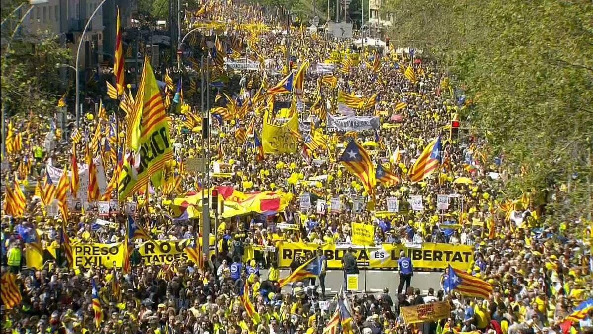 Unas 315 mil personas, según la Policía local de Barcelona, pidieron hoy la libertad de los líderes encarcelados preventivamente por el proceso independentista iniciado en Cataluña en 2017, y reclamaron «espacios para el diálogo y la negociación política» para resolver la crisis catalana.