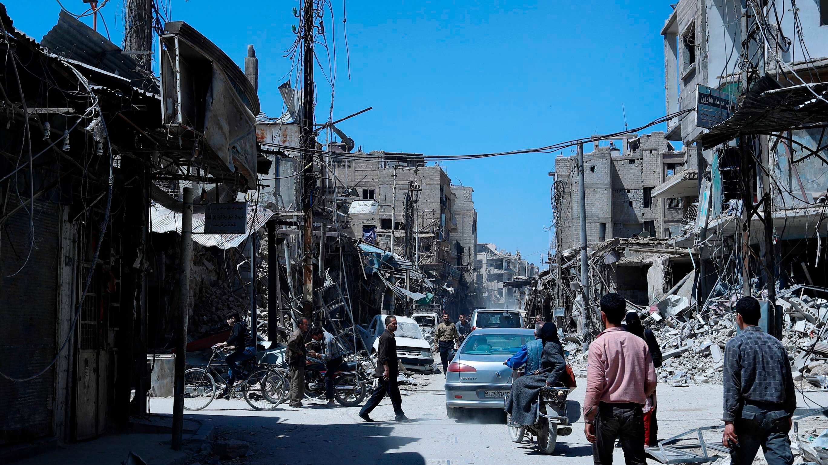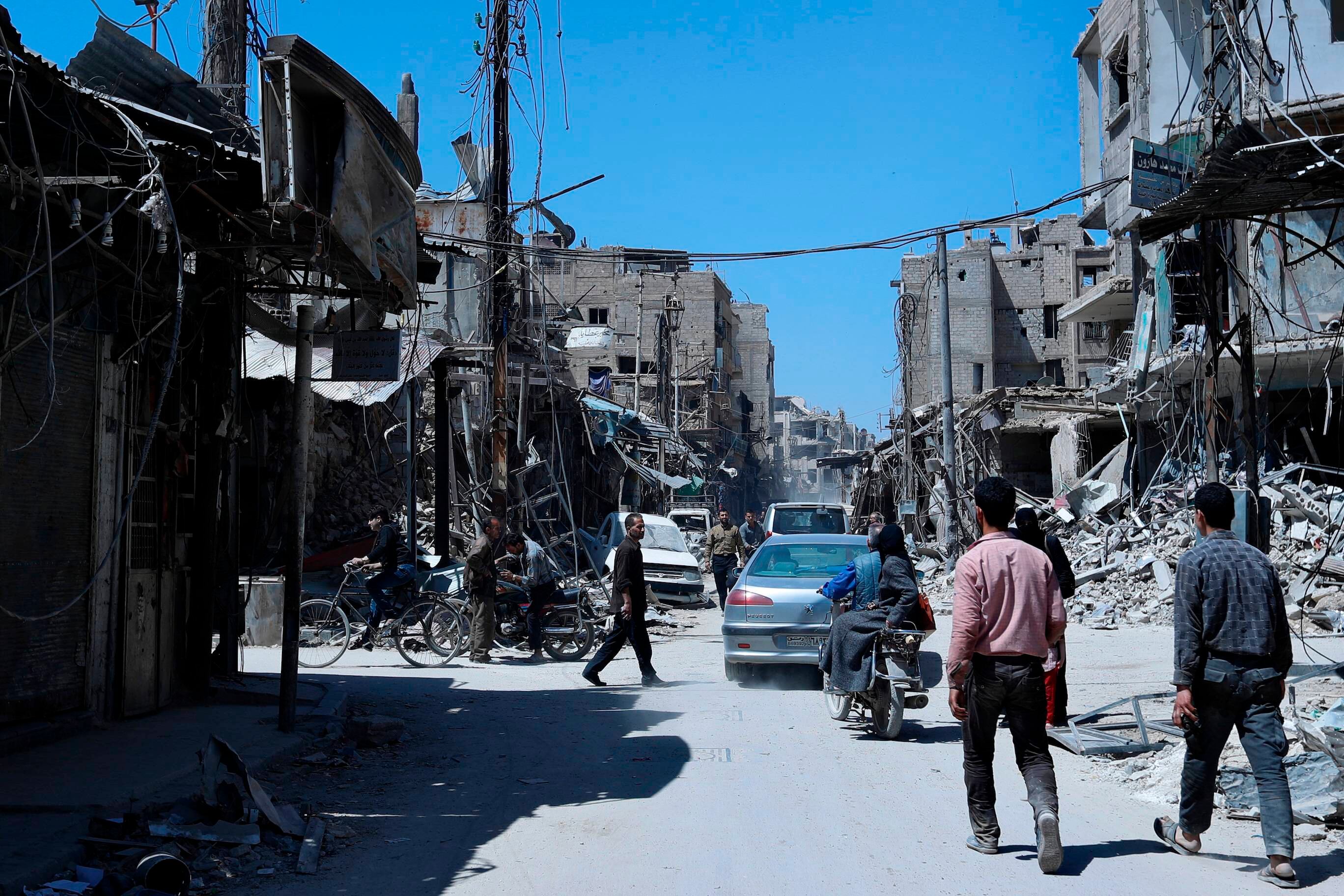 Dumayr es una localidad de las montañas de Qalamoun, cerca de la región de Ghouta oriental, que la semana pasó completamente a manos del gobierno tras una intensa ofensiva que duró varias semanas y un supuesto ataque con armas químicas.