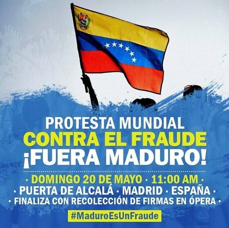 Venezolanos marchamos unidos en Madrid para rechazar farsa electoral de Maduro y exigir su dimisión, intervención humanitaria, libertad de presos políticos y apoyo a juicios en Tribunal Penal Internacional. pic.twitter.com/ILp7TajVGR