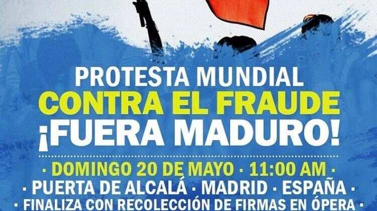 En Madrid, España, decenas de personas, liderados por el ex alcalde de Caracas, Antonio Ledezma, protestaron hoy en Madrid, España, contra la «farsa» de elecciones presidenciales que se celebran hoy en su país y pedir a la comunidad internacional no respalde los resultados.