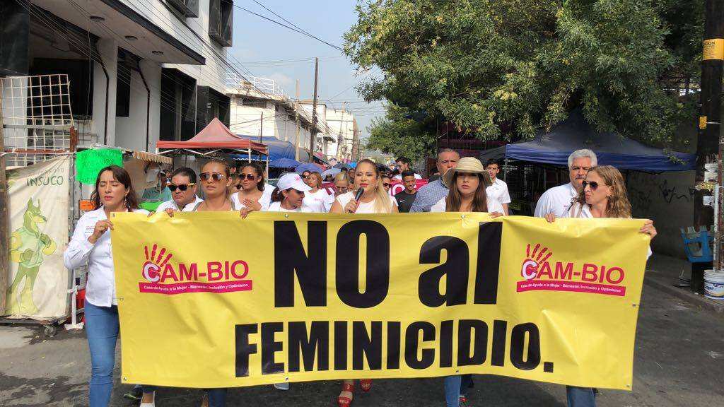Integrantes de la asociación CAM-BIO y ciudadanos se unieron en una marcha para demandar un alto a los feminicidios en la entidad.