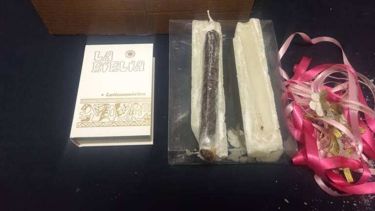 En el aeropuerto de Guadalajara policías federales interceptaron una paquete que contenía una biblia y una vela para una primera comunión, ya que se detectó que contenía droga, aparentemente heroína.
