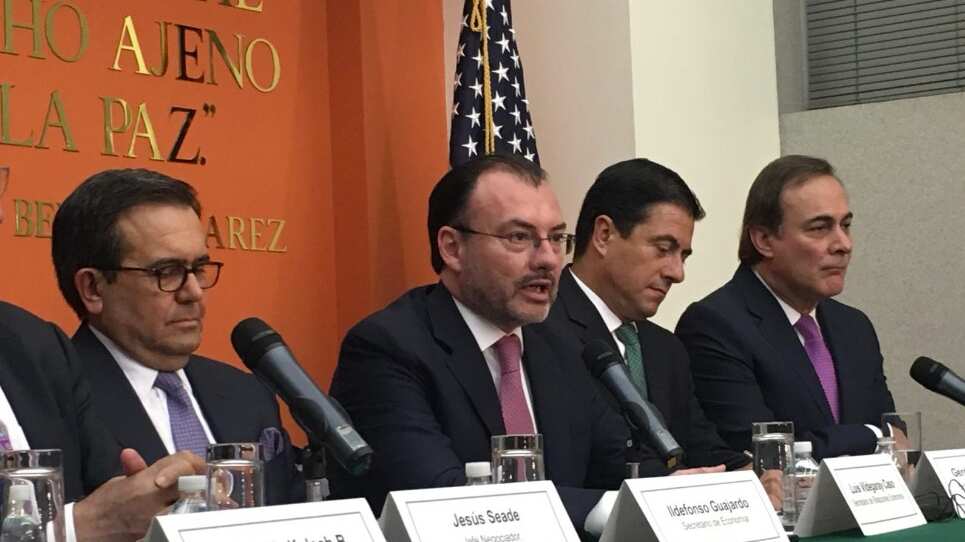 «La incertidumbre deja de ser si habrá o no un Tratado de Libre Comercio con America del Norte (TLCAN), ahora la incertidumbre será si es bilateral o trilateral», explicó Videgaray Caso.