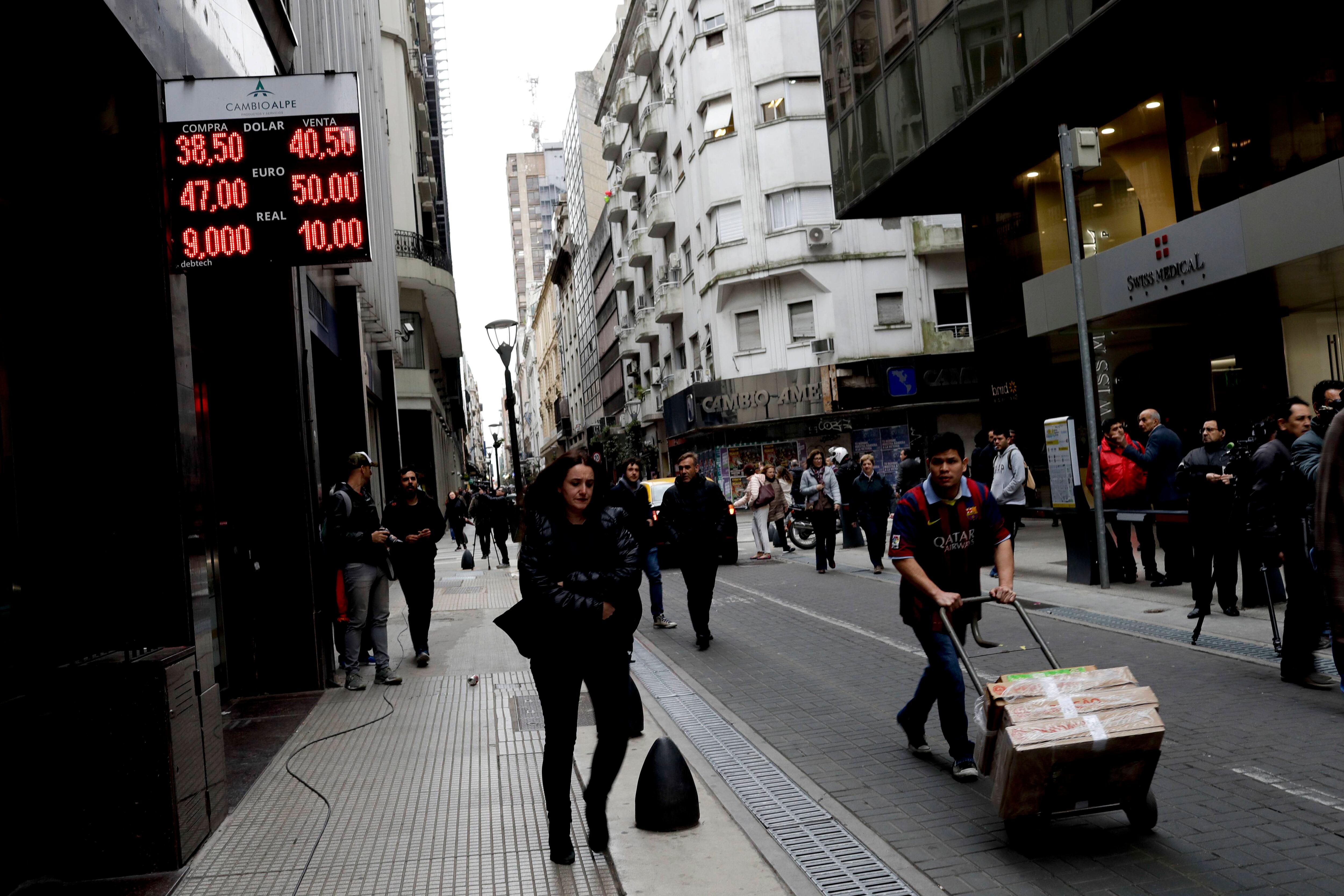 Pese a que abrió con relativa estabilidad tras la depreciación del 8.15 % registrada el miércoles, a lo largo de toda la jornada del jueves la escalada del dólar volvió a desplomar a la moneda argentina y la llevó a niveles récord. A media jornada llegó a establecer un nuevo máximo histórico: 41 pesos argentinos por dólar.