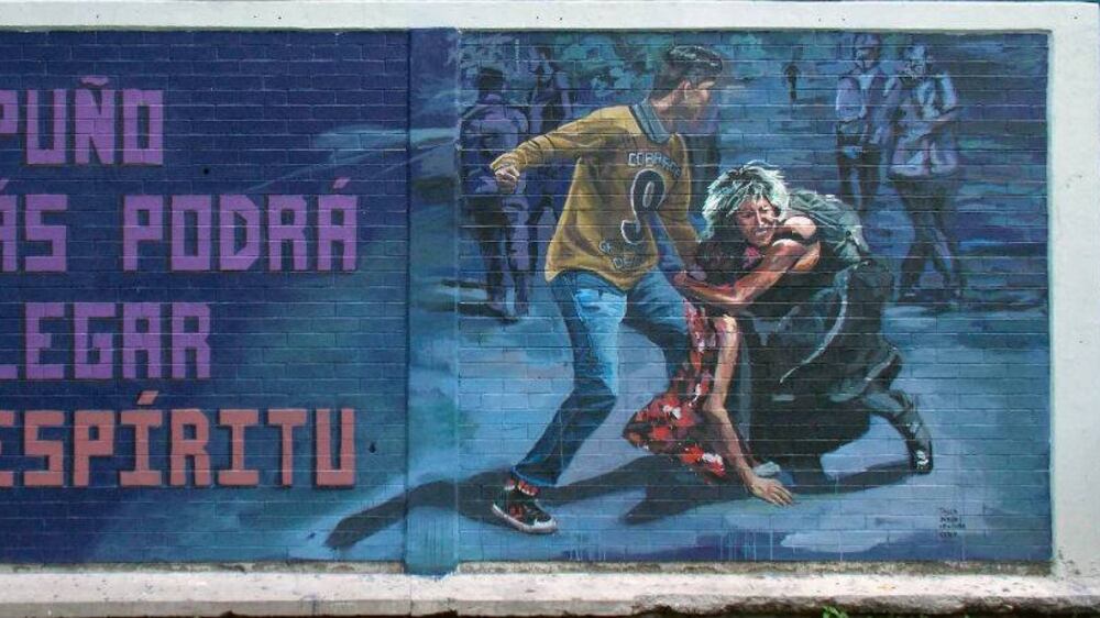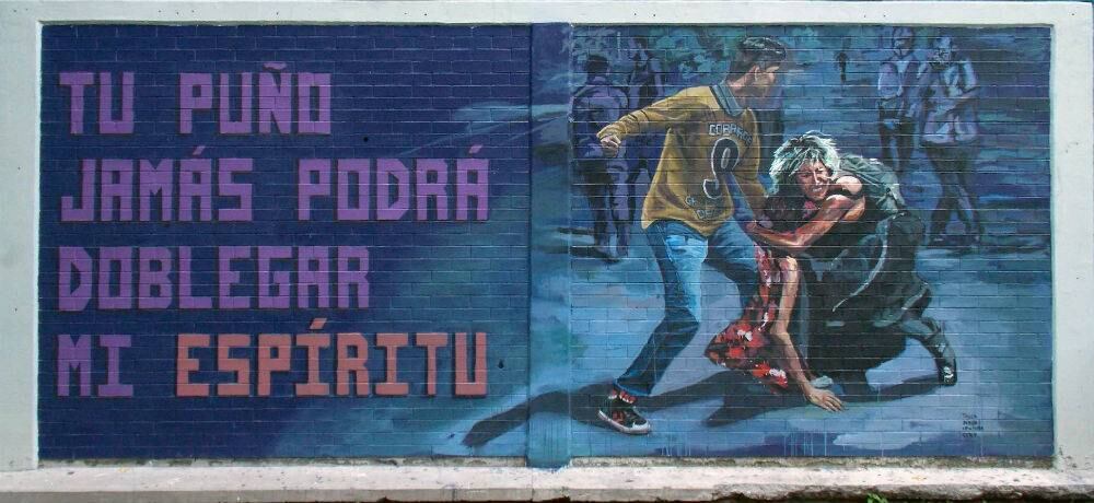 La pinta también está acompañada de la frase “Tu puño jamás podrá doblegar mi espíritu”.