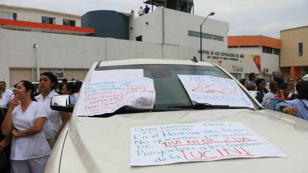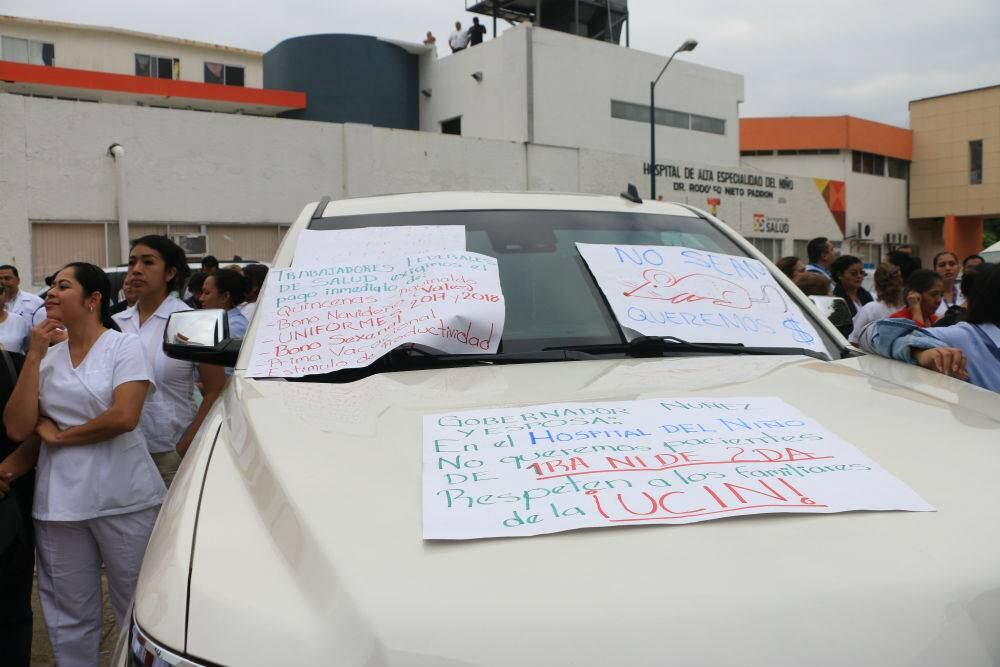 Pacientes y personal de Salud de dicho hospital prohibieron salir del estacionamiento la camioneta de López Aguilera, esto en protesta ante la falta de pagos y la crisis de medicamentos, material de curación y otros suministros que vive el sector.