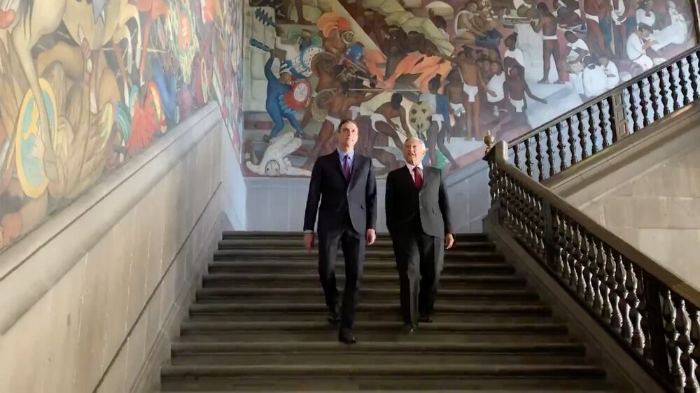 En su cuenta en Twitter @lopezobrador_, el presidente colocó un video en el que se le observa bajando la escalera principal en Palacio Nacional junto con el mandatario español mientras observan el mural de Diego Rivera, «nuestro Picasso».