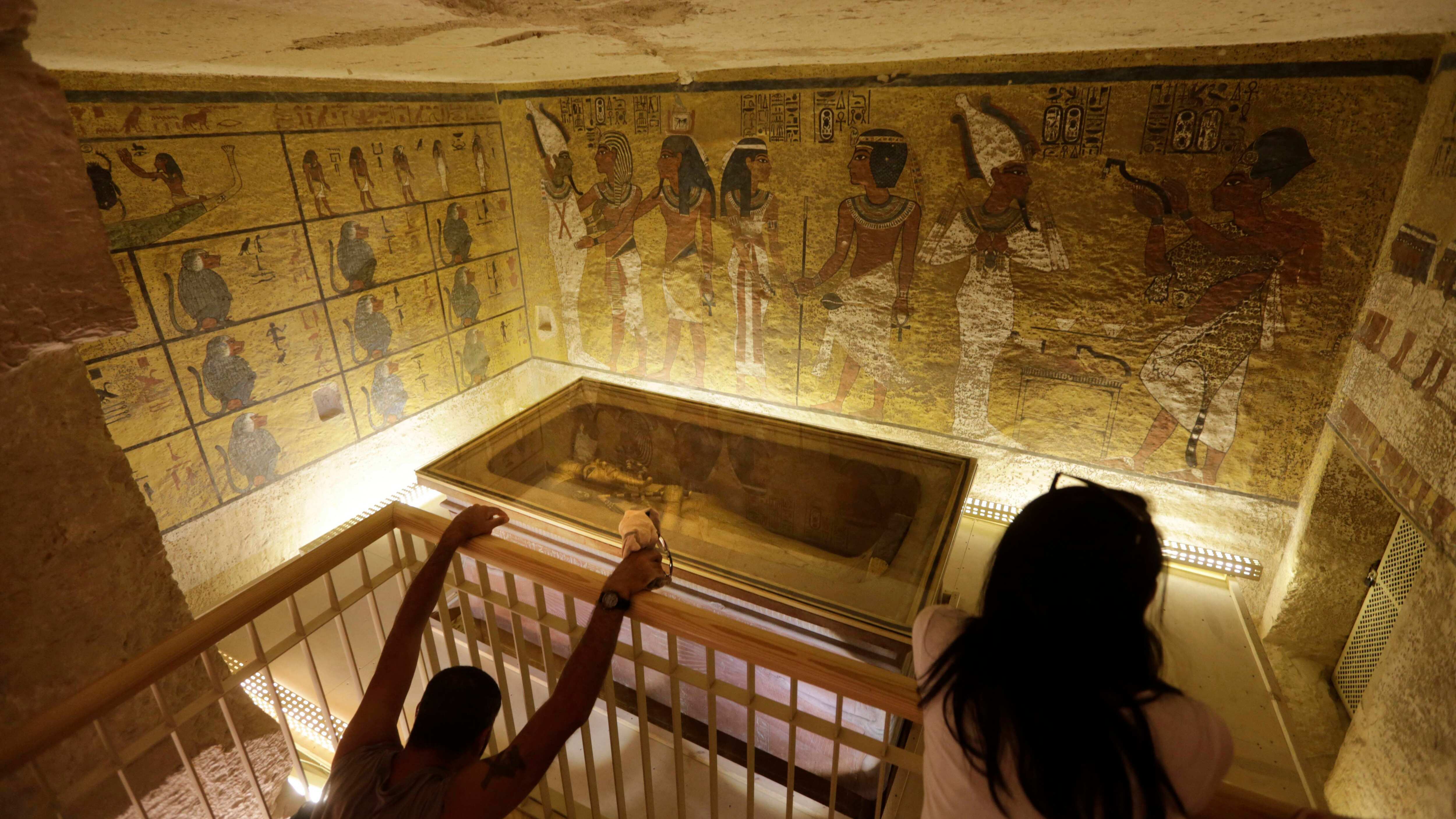 Durante la visita de los arqueólogos y periodistas a la tumba, medio centenar de turistas se arremolinaban en la estancia, en la que reposan la momia y uno de los sarcófagos de Tutankamón, quien reinó en Egipto entre 1332 y 1323 a.C.