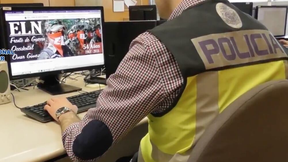 Al arrestado, de nacionalidad española, se le atribuye un delito de terrorismo por albergar la infraestructura de propaganda y difusión de contenidos del ELN, según informó la Dirección General de la Policía española en un comunicado.