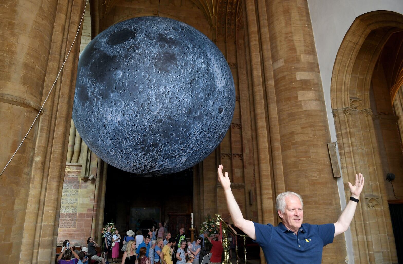 Una impresionante instalación del satélite natural de la Tierra fue exhibida recientemente en la Abadía de Sherborne, en el Reino Unido. La obra de arte denominada ‘Museo de la Luna’ fue creada por el artista británico Luke Jerram. La obra maestra permaneció tres días en la iglesia, durante los cuales cientos de personas vinieron a observarla y a tomar fotografías. Incluso se llevaron a cabo en el lugar una serie de pequeños conciertos con la Luna en la cima.