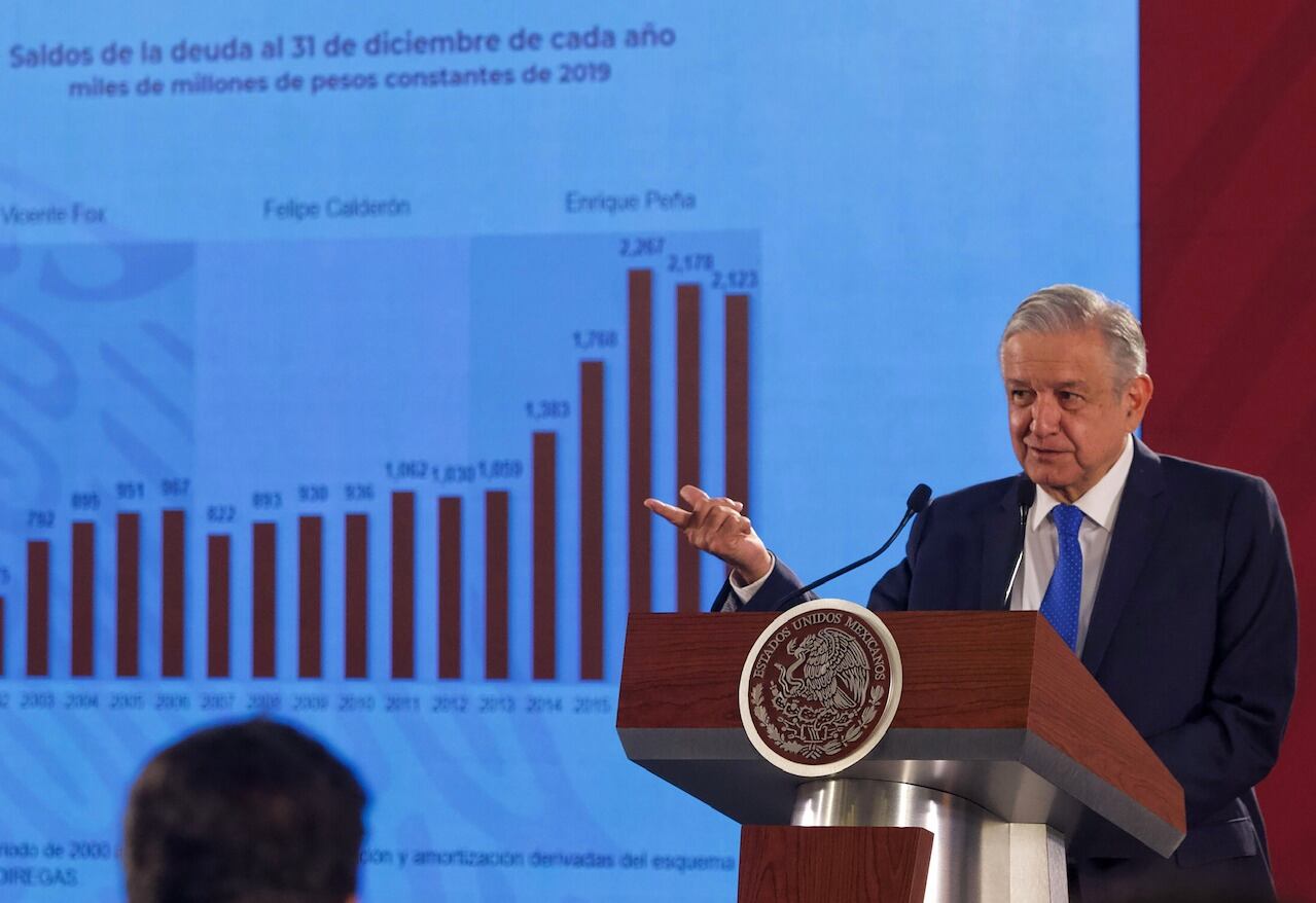 Durante su conferencia matutina, el presidente Andrés Manuel López Obrador destacó que los adeudos del país se multiplicaron hasta 200% durante el sexenio de Felipe Calderón; y se multiplicó hasta 10 billones de pesos en la administración de Enrique Peña Nieto.
