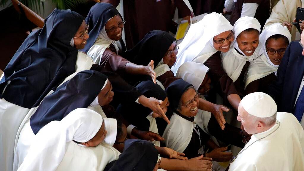 El papa Francisco se reunió este sábado con un centenar de monjas en un convento de carmelitas descalzas en la capital de Madagascar y les instó a que hablen «siempre y lo antes posible» cuando vean o escuchen «algo raro».