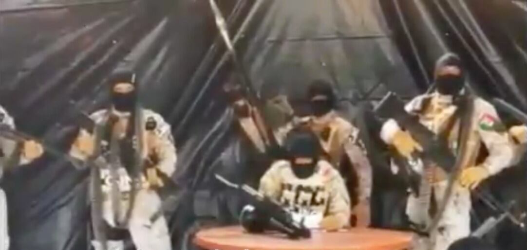 En el audiovisual se observan insignias del CJNG, liderado por Nemesio Oseguera Cercantes, El Mencho.