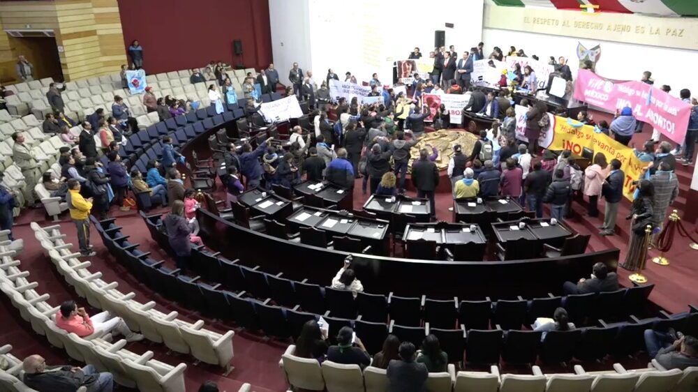 Integrantes de la asociación Ola Celeste tomaron esta tarde el pleno del Congreso de Hidalgo, para pedir un juicio político en contra de los legisladores que están a favor de la interrupción legal del embarazo.