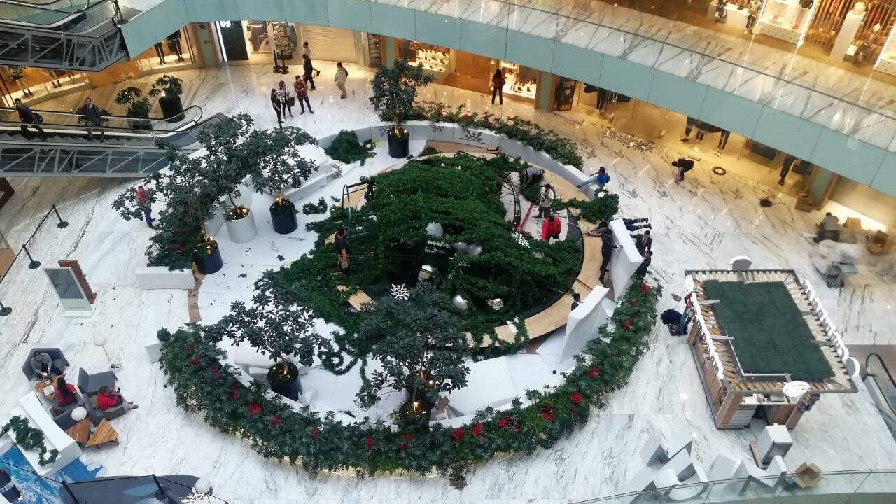 Esta mañana un Árbol de Navidad artificial de 15 metros de altura cayó al interior de la “Plaza Manacar”, ubicada en la colonia Insurgentes Mixcoac.