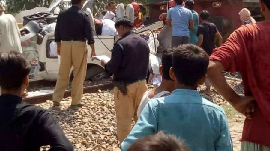 El suceso ocurrió en un paso a nivel de la localidad de Sheikhupura, cerca de la estación de tren de Faruqabad. El expreso, en dirección a Lahore, destruyó por completo el vehículo.