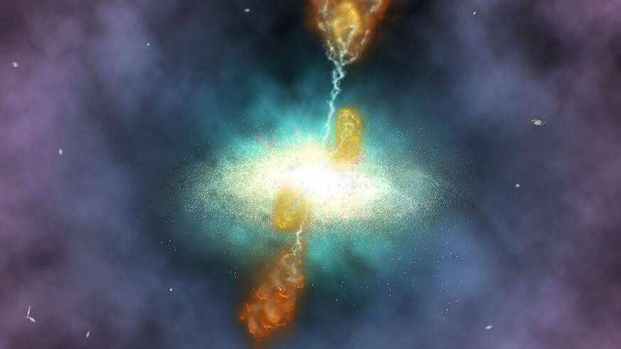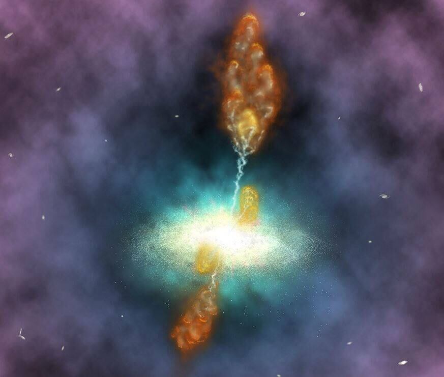 La comparación con las observaciones de la región tomadas del archivo del Observatorio de rayos X Chandra muestra que las estructuras detectadas por ATCA corresponden a cavidades de gas menos denso, lo que indica que son un par de chorros bipolares emitidos por un agujero negro en la galaxia. Por lo tanto, el equipo descubrió el primer ejemplo, en el que coexisten el enfriamiento de gas dentro del cúmulo y los chorros de agujeros negros, en el Universo distante.