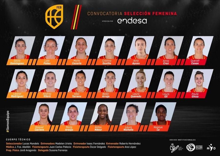 Además, en la lista también figuran otras jugadoras de la órbita de selección (Maite Cazorla, Leo Rodríguez, Belén Arrojo, Paula Ginzo, María Araujo y Nogaye Lo), una que regresa (Laura Quevedo) y dos debutantes (Aina Ayuso y Raquel Carrera). Por contra, causa baja por lesión María Conde.