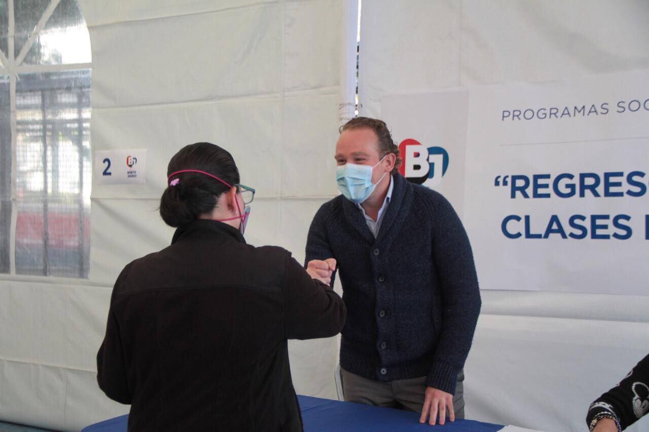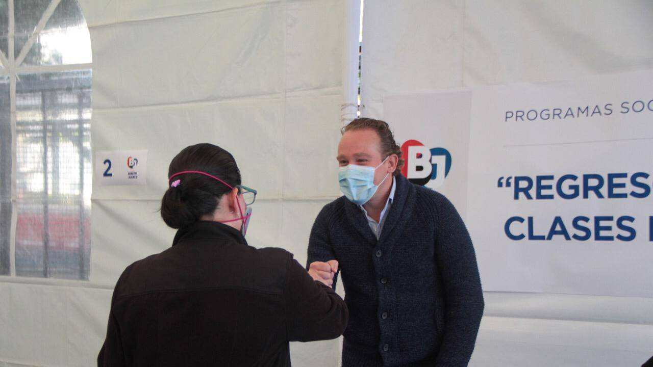“Ante la realidad de este año 2020, implementamos y mantuvimos el programa de regreso a clases Benito Juárez, hoy en día estamos entregando este programa que es una realidad en Benito Juárez, adaptándonos a las nuevas circunstancias para que los niños no dejen de estudiar”, afirmó el alcalde al entregar 1500 apoyos de 2 mil pesos cada uno para que niñas y niños de primaria y secundaria puedan seguir estudiando desde casa, comprar una tableta, pagar servicio de internet o adquirir algún otro insumo que ayude en su educación a través del programa “Apoyo Escolar BJ“.