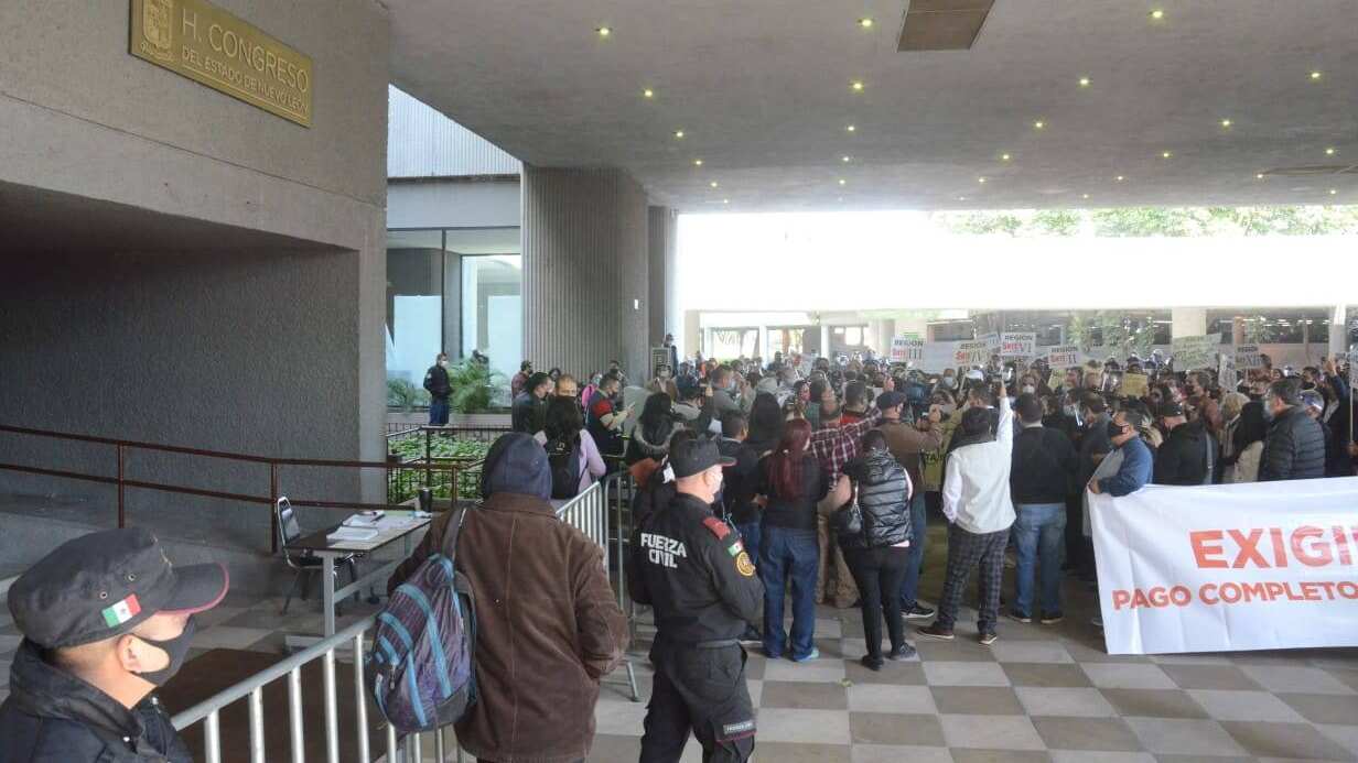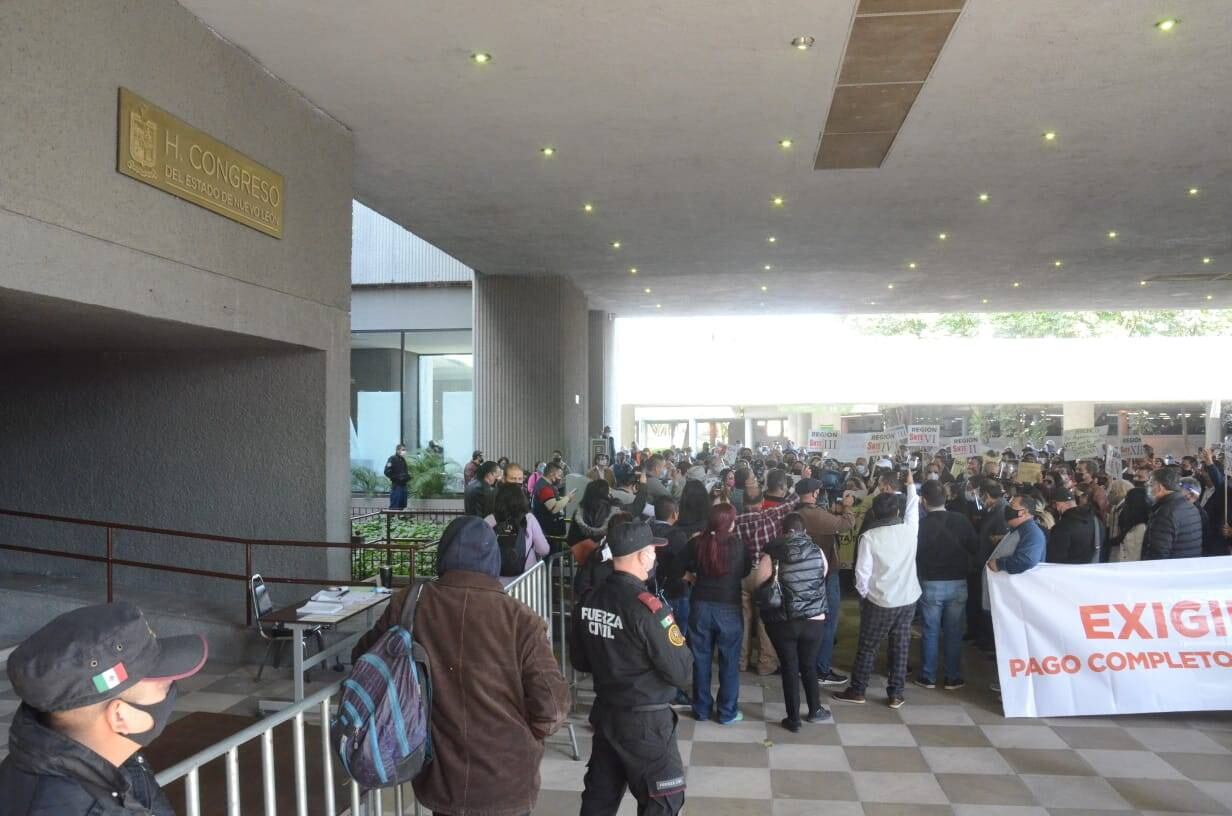 Los docentes exigen que se les paguen completos los tres meses de aguinaldo que reciben más uno de sueldo, sin embargo el gobierno del estado dijo que la pandemia los dejó sin recursos este año por lo que tuvieron que diferir pagos.