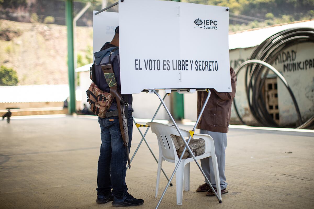 Mid Term Elections in Mexico AYAHUALTEMPA, MEXICO - JUNE 06: A member of the self-defense group CRAC casts his vote while carrying a weapon on June 06, 2021 in Ayahualtempa, Mexico. A record number of 93.5 million citizens are able to vote today in the largest election in the country's history. 500 deputies, governors in 15 states and 20,000 local authorities will be elected. During the campaign, 35 candidates were reported murdered. (Photo by Hector Vivas/Getty Images) (Hector Vivas/Getty Images)