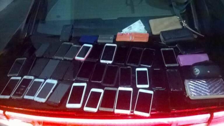 En la revisión encontraron el aparato celular que les refirió la víctima. En total traían en una mochila 38 aparatos celulares en una mochila, así como 5 carteras de mujer y una de hombre.
